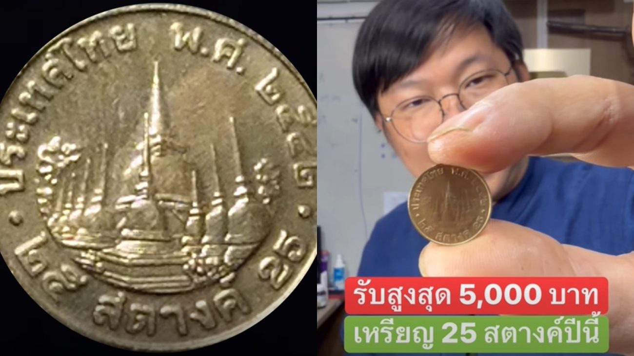 A local shop, Panan Jewellery, is offering up to 5,000 baht for a rare 25-satang coin minted in 1999. The coin, featuring a portrait of Bhumibol Adulyadej and the Phra Borommathat Chedi, is made from aluminium bronze with a distinctive golden-yellow color. Collectors value the 1999 edition due to its limited production of only around 10,000 coins that year. This post has sparked interest among netizens, prompting many to check their old coin jars for potentially valuable finds.