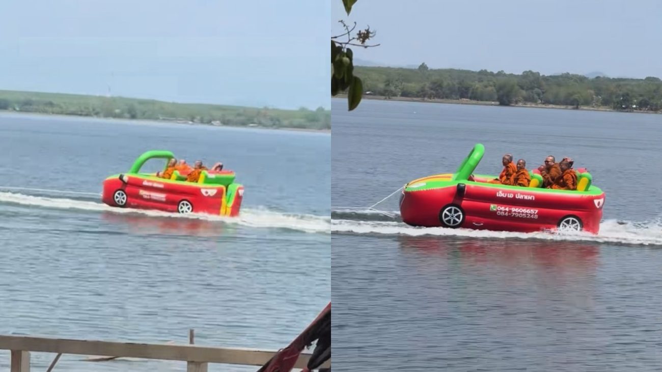 A viral video of monks riding a high-speed water attraction at Kham Somboon Beach has sparked debate online. The monks were seen on a banana boat-style ride pulled by a jet ski, leading to mixed reactions on social media. The operators confirmed that the monks paid for the experience, which lasted about 10 minutes. Local residents have called for authorities to investigate the monks’ identities and temple affiliations, concerned about the image of Buddhism being affected. The incident has garnered nearly 8 million views and prompted discussions about appropriate behavior for monks in public.
