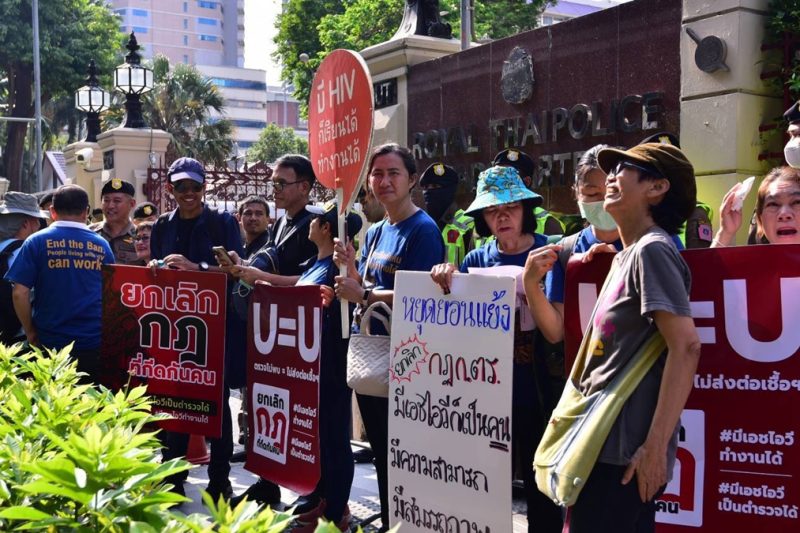 Advocacy groups in Bangkok protested outside the Royal Thai Police headquarters, demanding the removal of a … Activists urge police to end HIV ban on recruitsRead more
