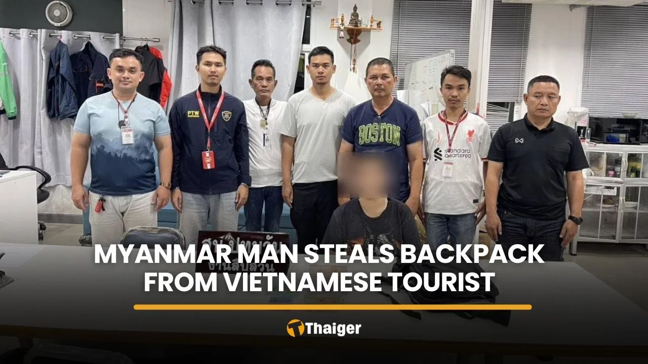 Police in Pathum Wan district, Bangkok, arrested a Myanmar man after a Vietnamese tourist reported her backpack stolen at Siam Paragon. The case was resolved in under two hours, with officers tracking down the suspect through CCTV footage. The suspect, identified as a 31-year-old Myanmar national named Lane, confessed to the theft and led officers to the stolen property. The recovered items included the victim’s backpack and cash in Thai baht, US dollars, and Vietnamese dong. Lane was charged with nighttime theft and handed over for further legal proceedings.